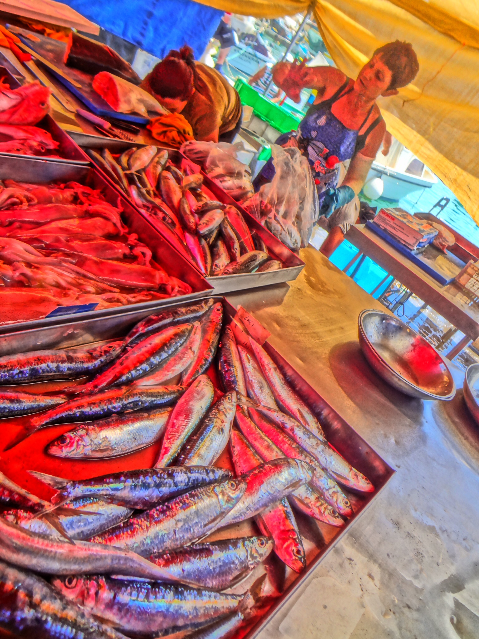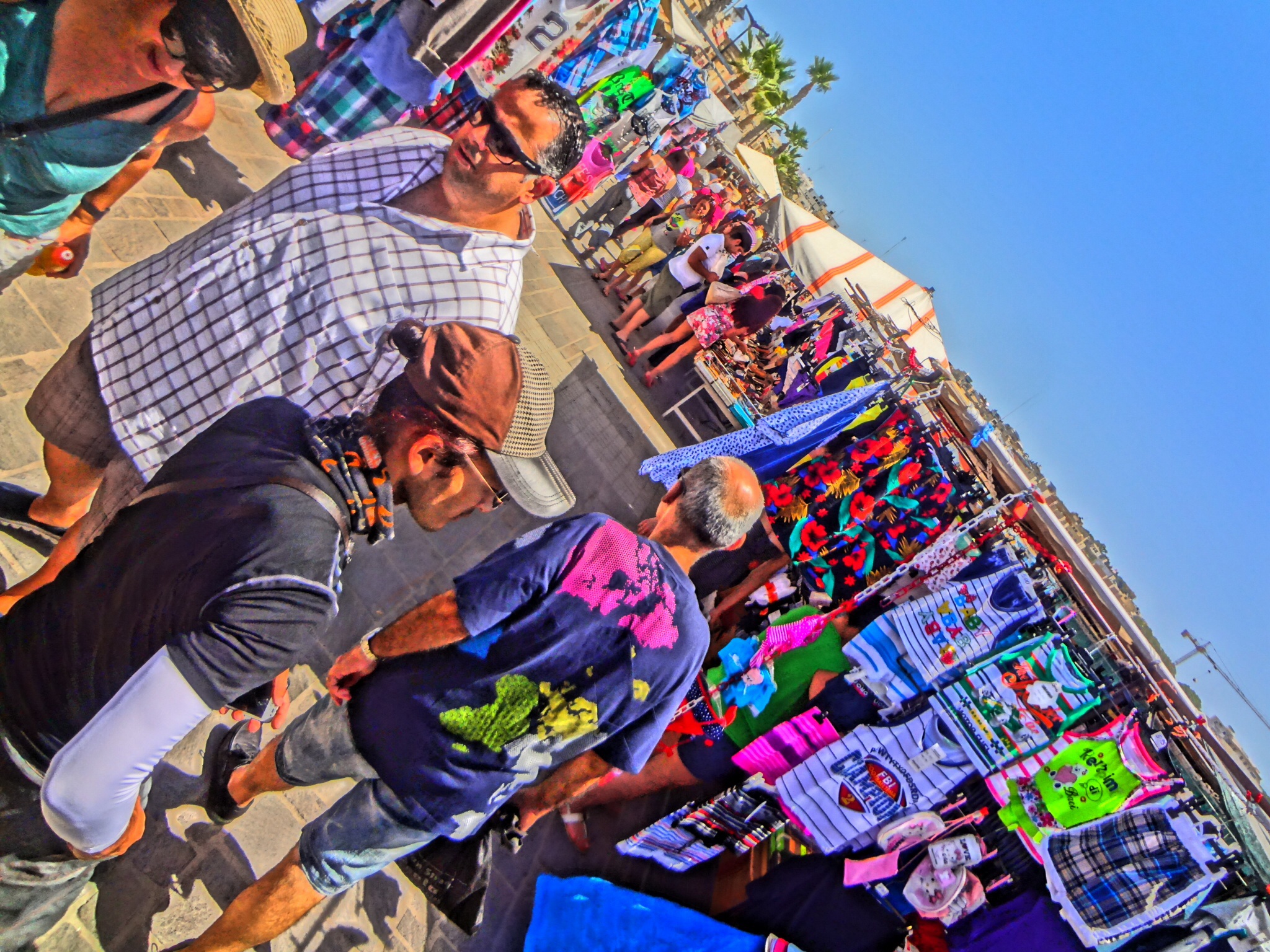 The ancient coastal village of Marsaxlokk is located on the southeast of Malta’s main island.  On Sundays there is a market that seemingly goes on forever with fresh fish as the exclamation point at the end of one’s walking past table after table of cheap housewares, cheap clothing, cheap jewelry, cheap memorabilia, and cheap snack food.  It’s like Maltese Walmart out of doors.