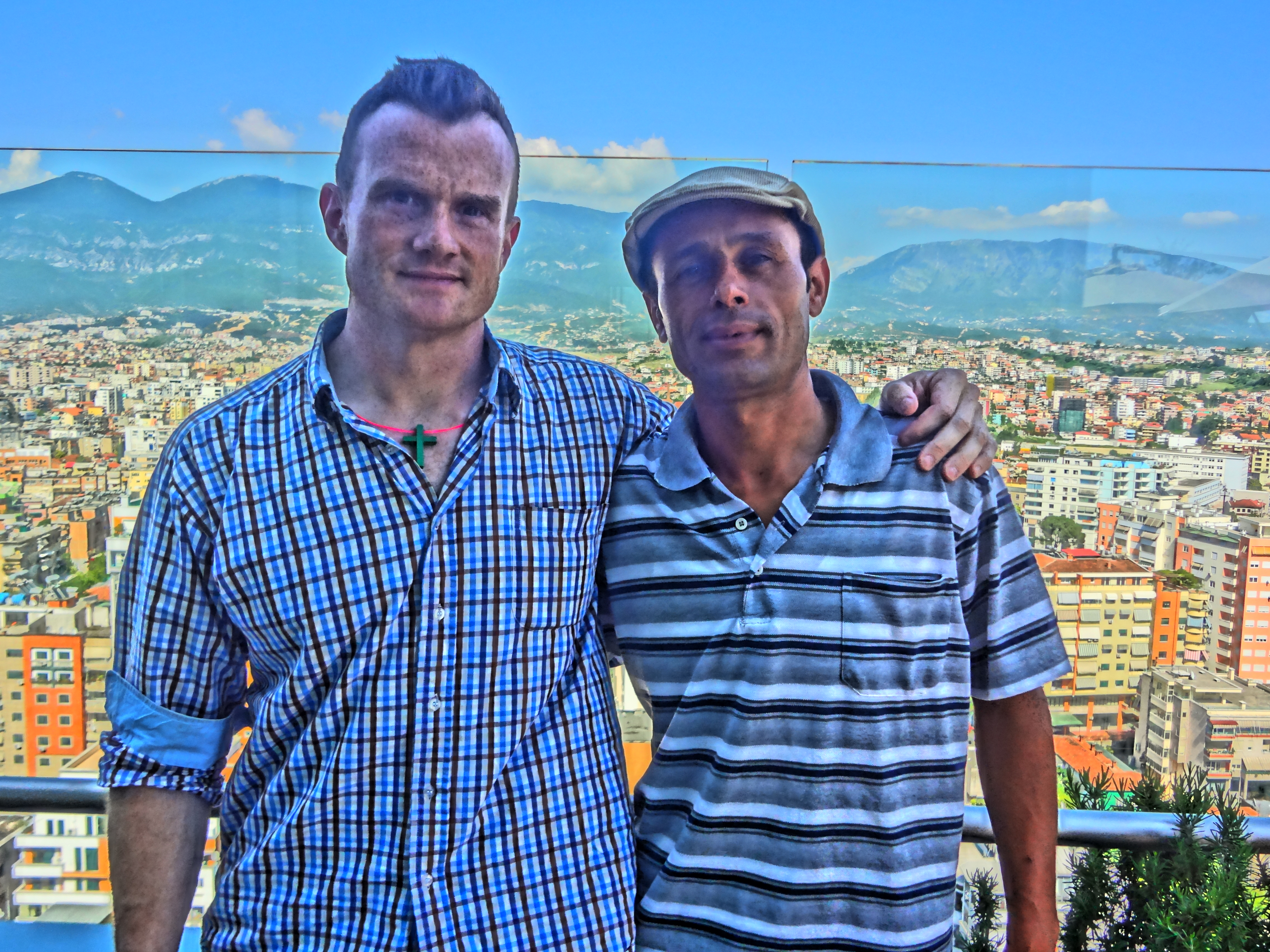 There is Siamir, Fatjon’s father and the most skilled worker on our job-site. The first time I met him was on June 1st. I remember because this was the Albanian Children’s Day. He is a quiet, hard-working, intelligent, thoughtful, honest and sincere man who has seen much of south-eastern Europe. He makes every effort to show the people he comes into contact with the honor of respect. His concern is your comfort. Today we took his son to Tirana after work to buy a cellular telephone. Afterward we went for coffee on the top floor of the tallest building in Albania; the Aba Business Center.