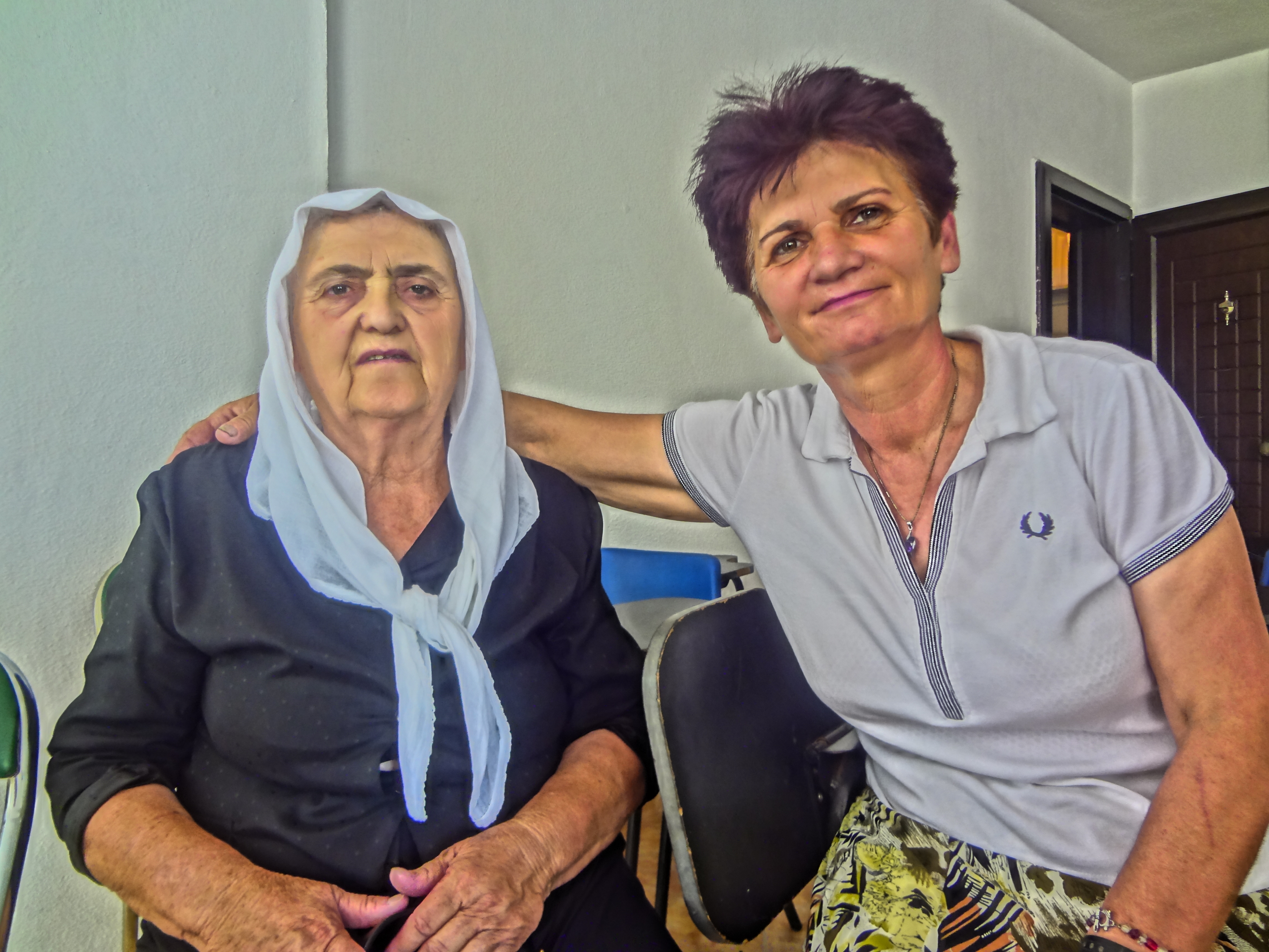 After the conclusion of the sermon, I was tapped on my back by a woman called Fatima. I have met her a few times before. I mentioned a woman some weeks back who asked me to pray for the healing of her hands. After that first prayer she looked at me and simply wrung her hands, feeling no difference. I felt like I had administered a placebo. Today I was surprised to be asked again by her for prayer. I held her hands tightly today, and there was a palpable energy from my head downward as I spoke to God. “Only you can heal Lord God, and I pray for the healing of this woman in the name of your son Jesus.” After a few minutes of praying together, she was delighted to inform me that she had felt something, and that her hands did feel better. She asked through an interpreter that I pray for her whenever I pray. I told her I would. More than a few times after we parted did I see her talking with someone from the church while looking and pointing at me. I have never been the conduit of something like this before. Later Fatima was sitting with a woman in a white head scarf. With permission, I took their picture.