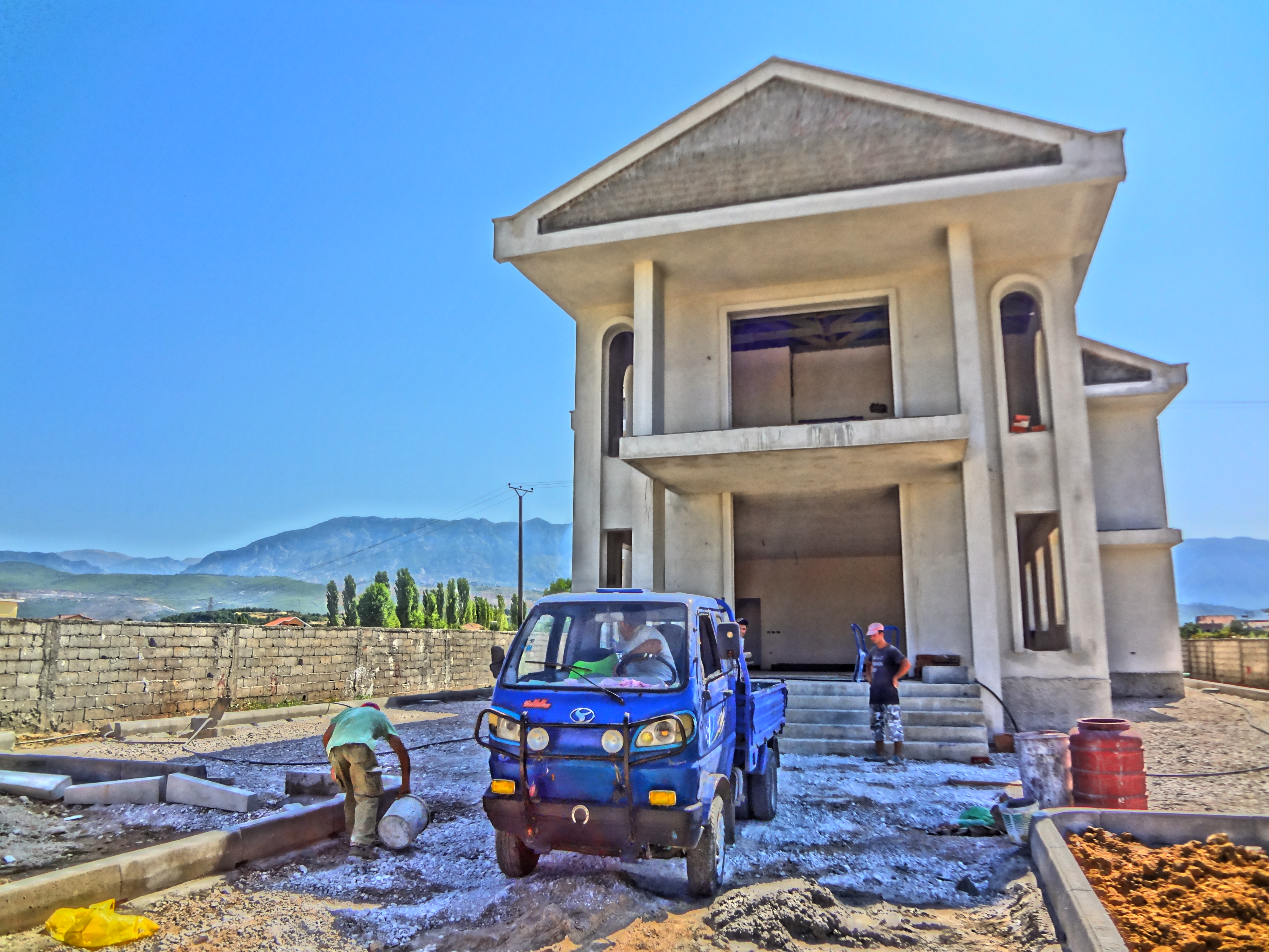 On Wednesday I got into Fushekruje around 9AM, it takes me about 2 hours to get to there from Tirana. I spent the day with my work family: Ervis, Fatjon, Saymir, Agim, and Peirin. Yes, we are still moving in structural fill and heavy earth and placing concrete borders, but the end is in sight.