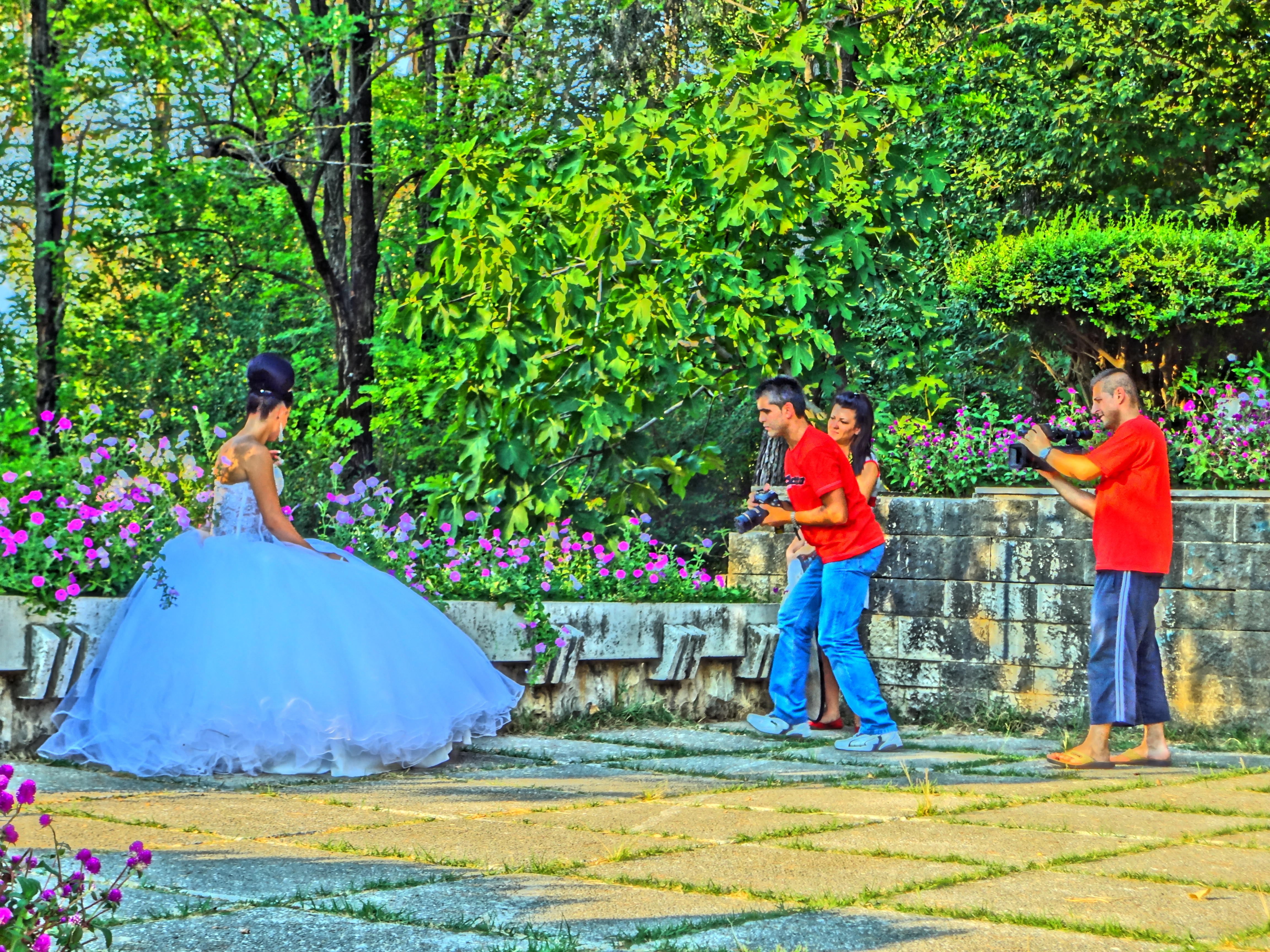 We also had the good fortune of spotting a summer bride with her photo entourage.  The wedding season has picked up as of late; motorcades of honking cars bejeweled with bows, hearts, and lacy streamers can be seen in the city at nearly any time of day.  Weddings are a thing of magic, even for me, even now.  There is nothing quite so beautiful as a woman all in white.
