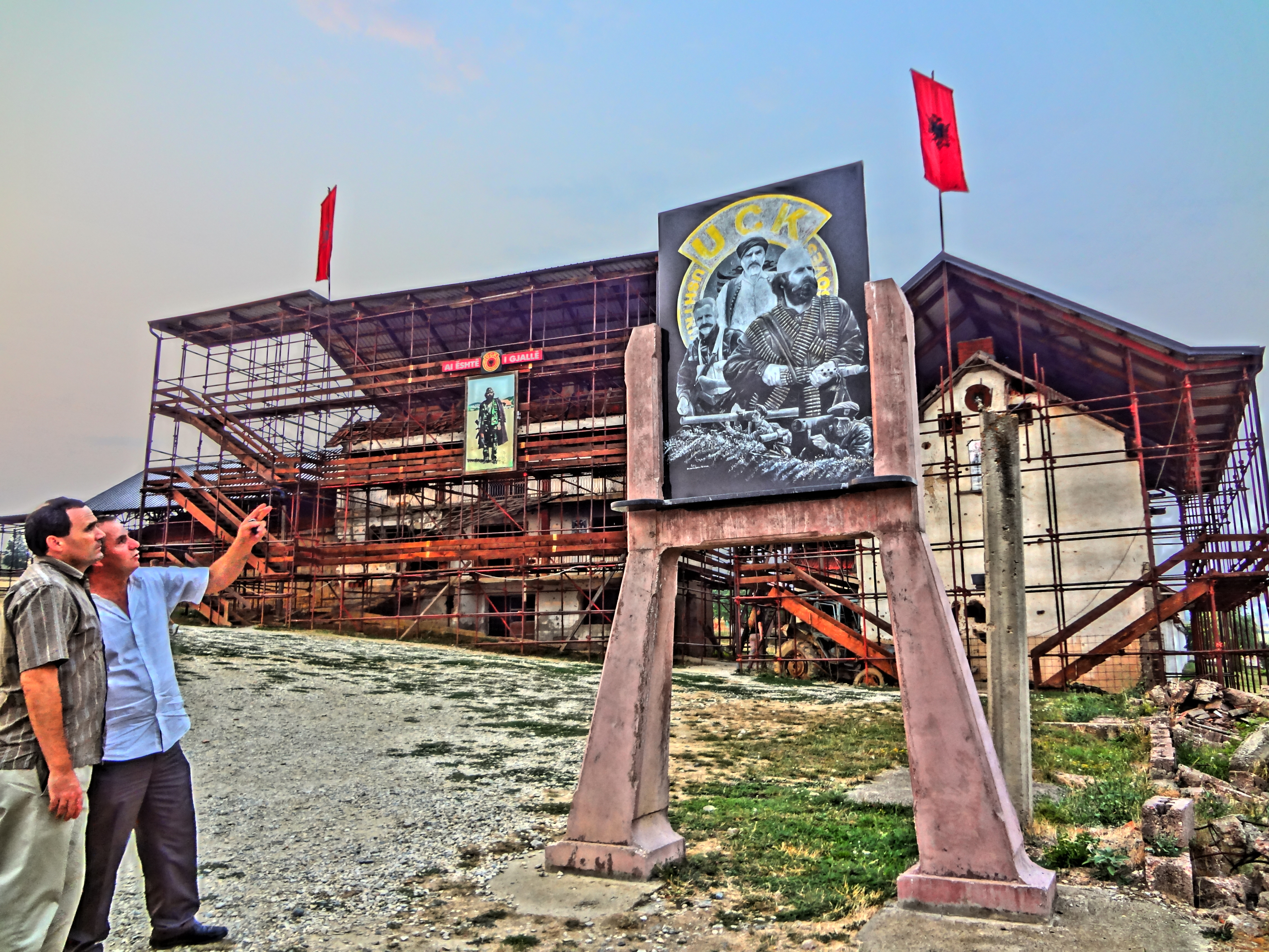 The Jashari Family houses which were besieged by the Yugoslav National Army have been preserved; covered by free-standing roof structures and surrounded by scaffold-style catwalks. There are a few small souvenir shops near by. A great, three-dimensional, triangular building has also been erected near by; serving as a marker of infamous slaughter.