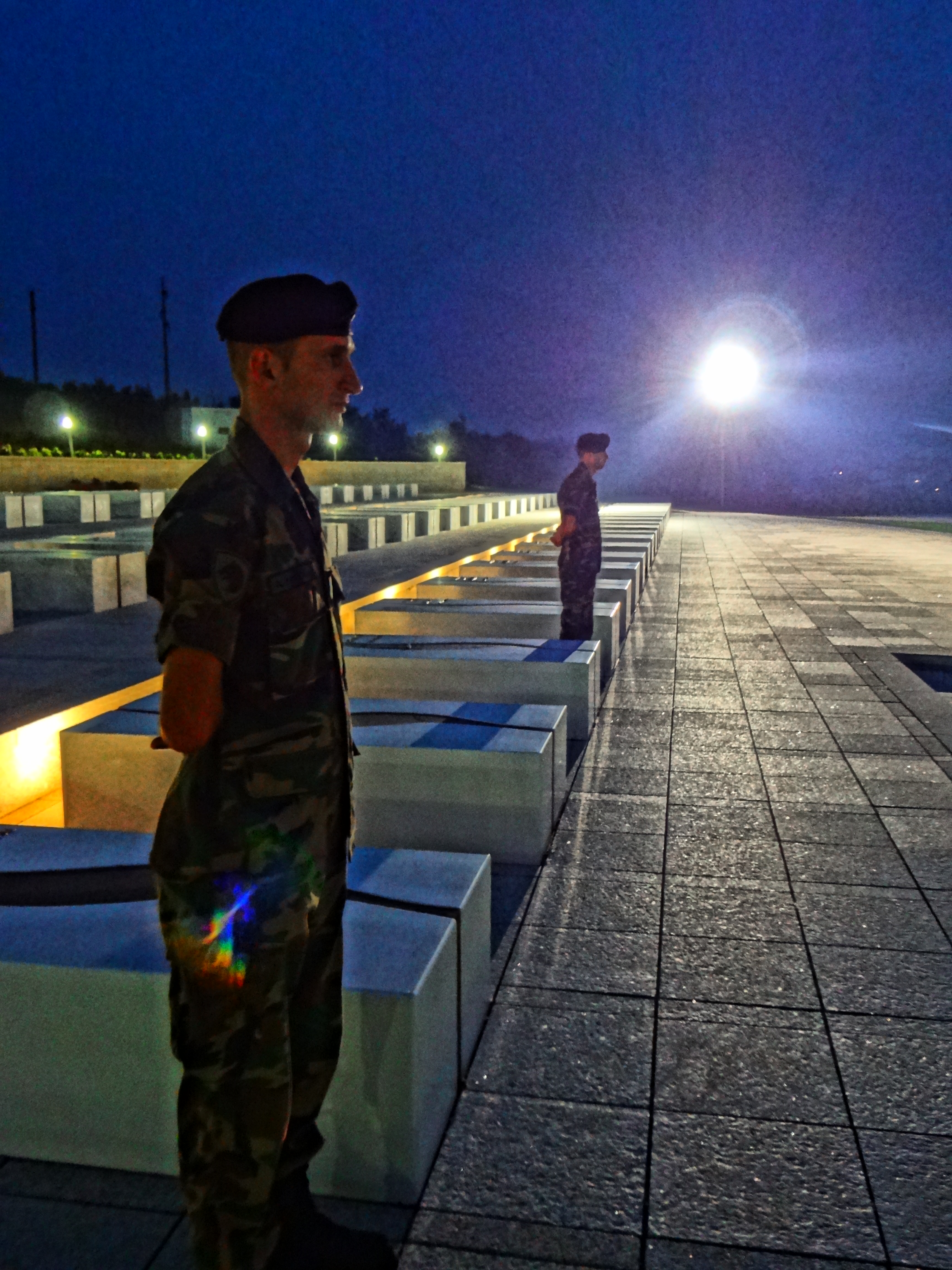 There is a pathway, paved in blood-red marble winding its way throughout the memorial. One path leads up a gentle incline to a bunker where Adem and his family would travel to from time to time. The central focal point of the entire complex is, however, the 59 solid-core, Carrera marble grave markers which line three steps of the hillside across the street from the Jashari family plot. The graves have been placed chronologically by generation beginning with Adem’s father and succeeding to his brothers and himself, followed by their wives and children.