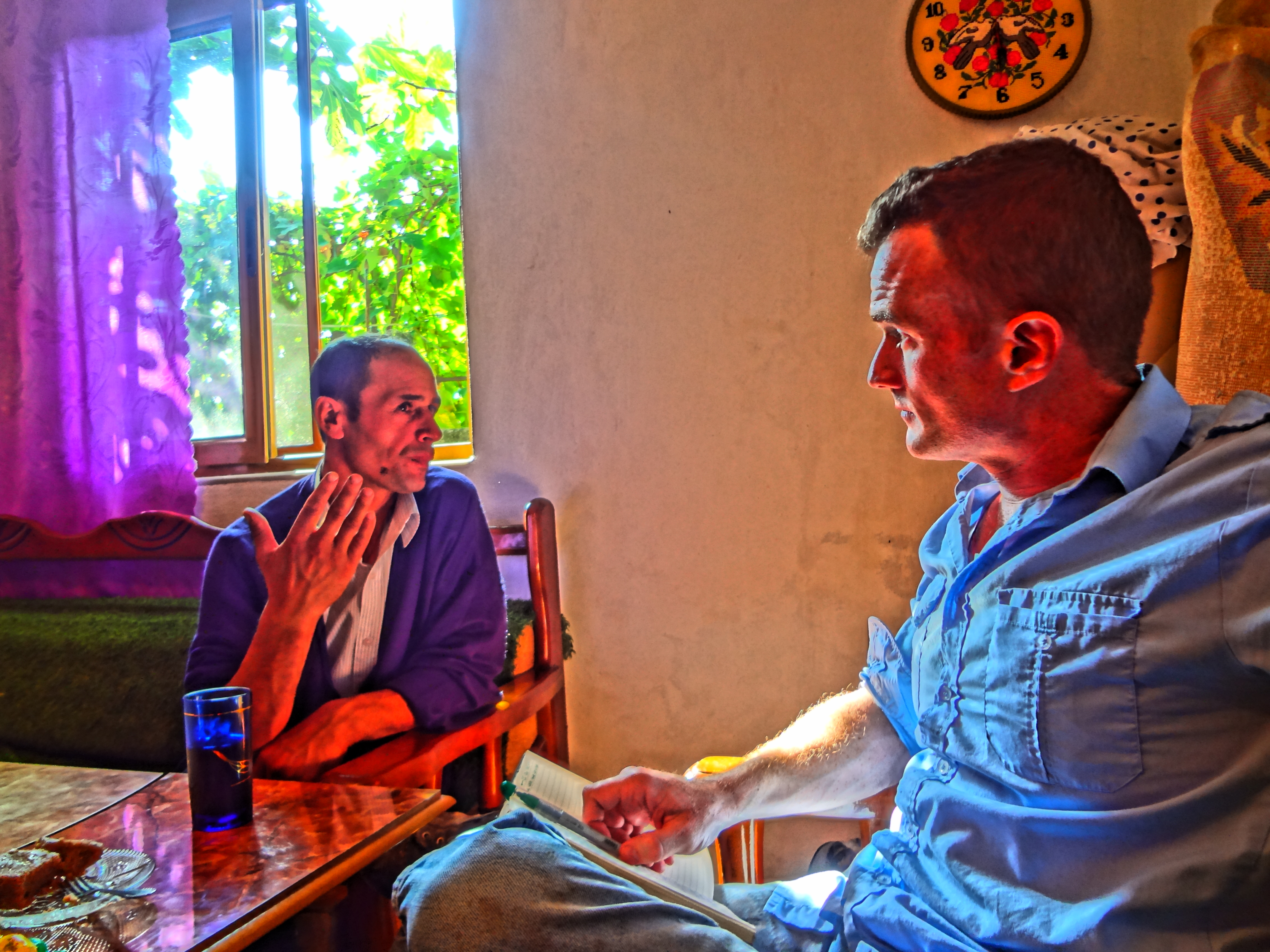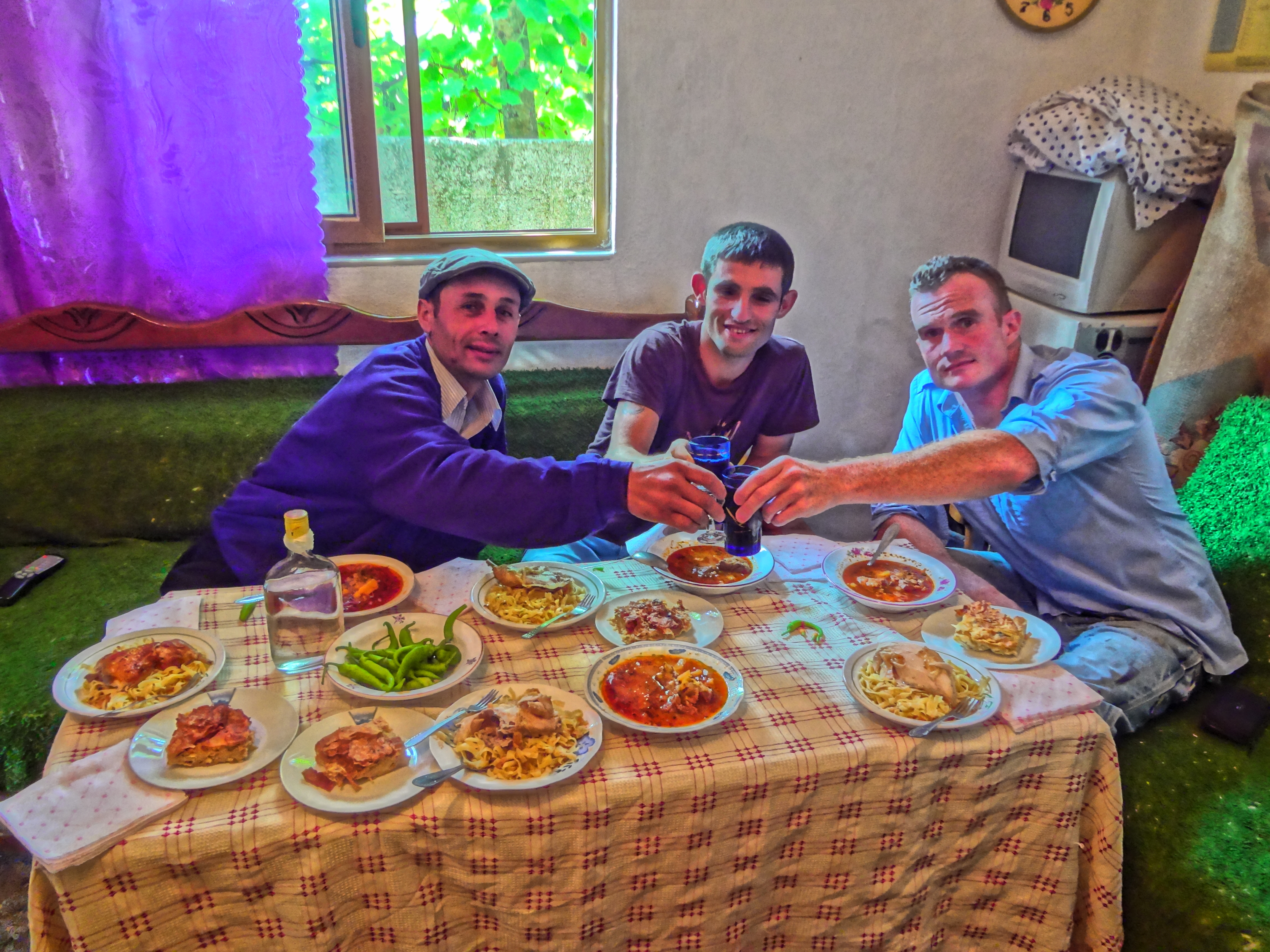 Fatjon invited Visi and I to his home for lunch, and we accepted. We began our visit with a small chocolate, followed by the serving of beverages. After a little while Fatjon’s mother brought out a hearty potato and beef stew, cold noodles with chicken, byrek, fresh bread and a bowl of peppers from the garden. Our conversation went beyond the normal table talk I’ve grown accustomed to. Fatjon’s parents both shared with me about experiences they have had with God via the Church and the Bible. I didn’t expect to have conversation around religion at all, but there I was, with two people I love and respect, whom I want to know God, sharing my experience and understanding with them.