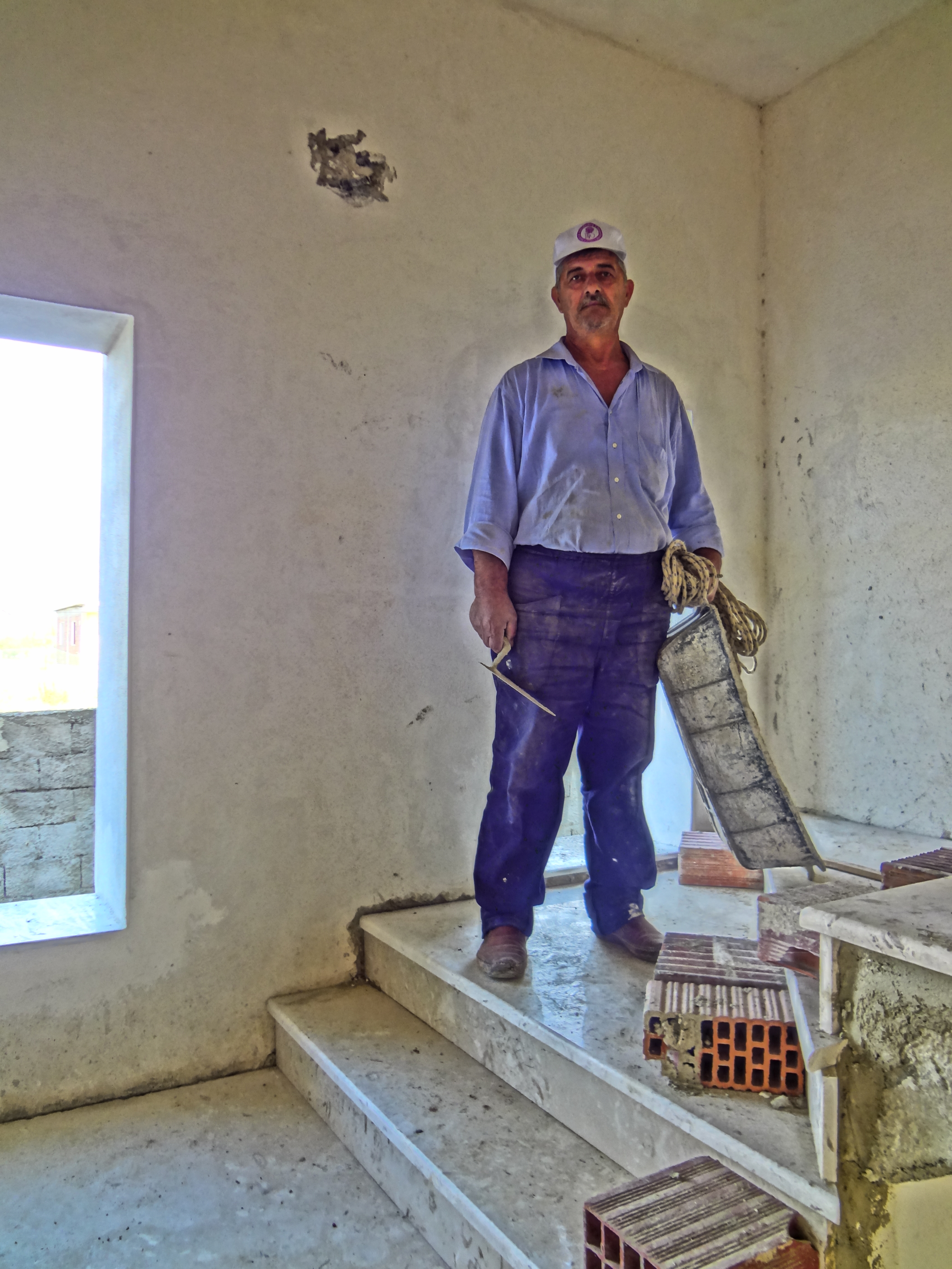 The church in Fushekruje had a different appearance today from the time when I left 9 days ago. The facade in the front and the rear have been inlaid with tile, giving just another incremental glimpse of what the finished church will look like. The godina went through another transformation in roof plan while I was away, and it looks finished and professional. Visi was pleased to report that in seven days of rain there hadn’t been any leaks. The transformer which will bring electricity from the street to the church has been mounted and appears ready for its final wiring. Visi had also done quite a bit of work on the flower beds which are on either side of the entry-way steps.
