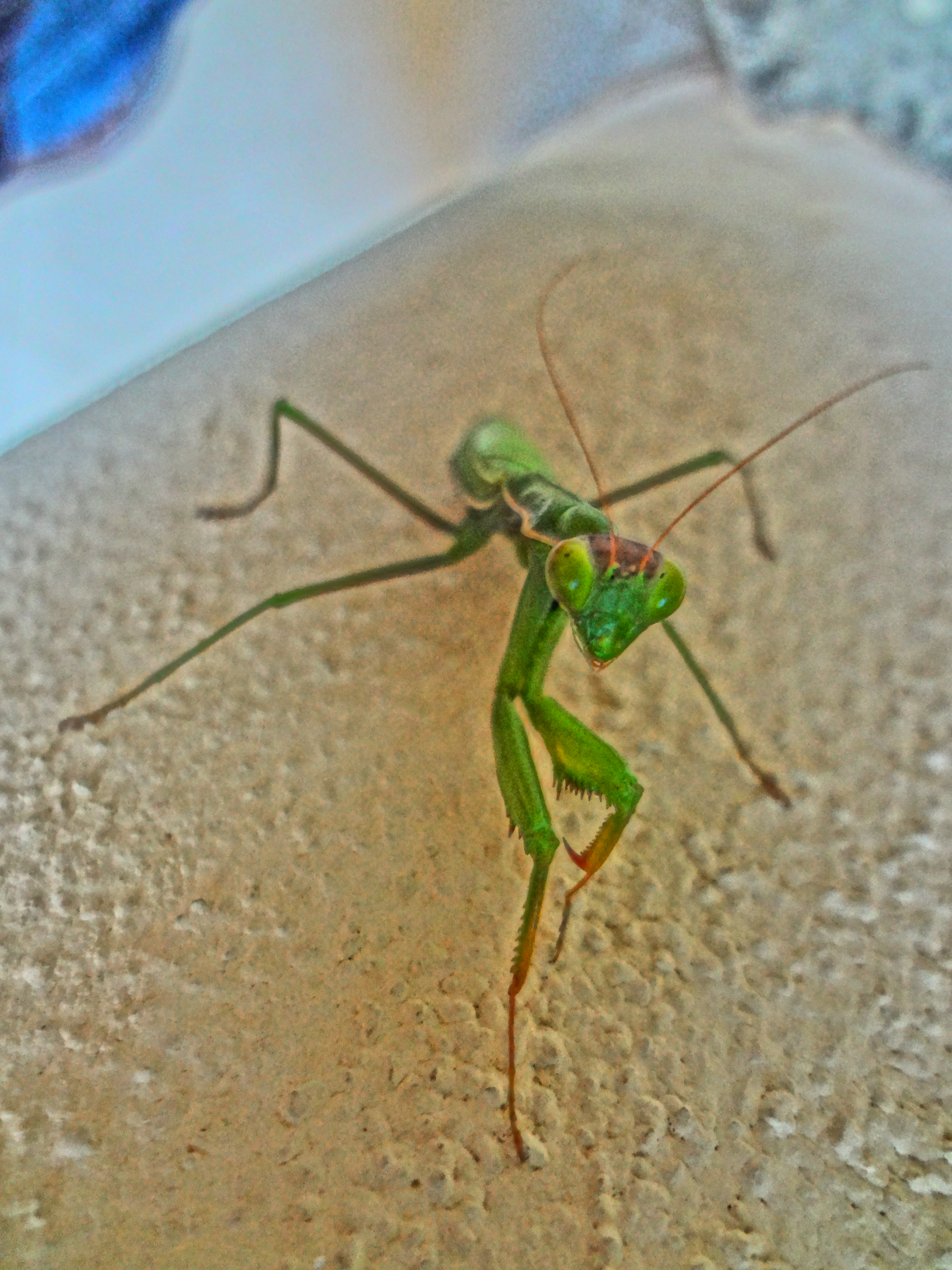 I have seen one other praying mantis in Albania, but it was the color of dry wheat. I asked one of my friends what the word is for this beauty in Shqip and he said “Insect.” That was the end of our conversation.
