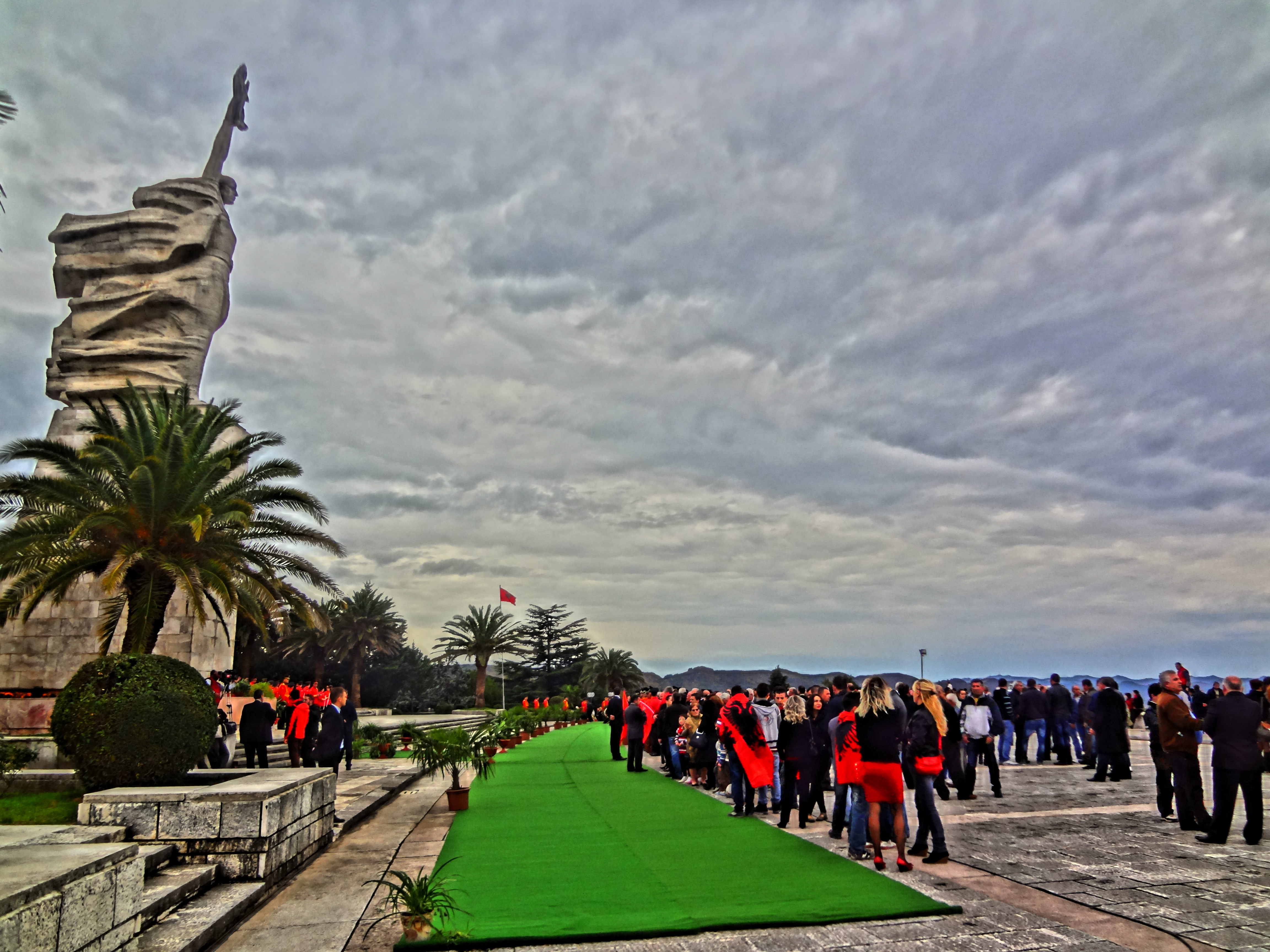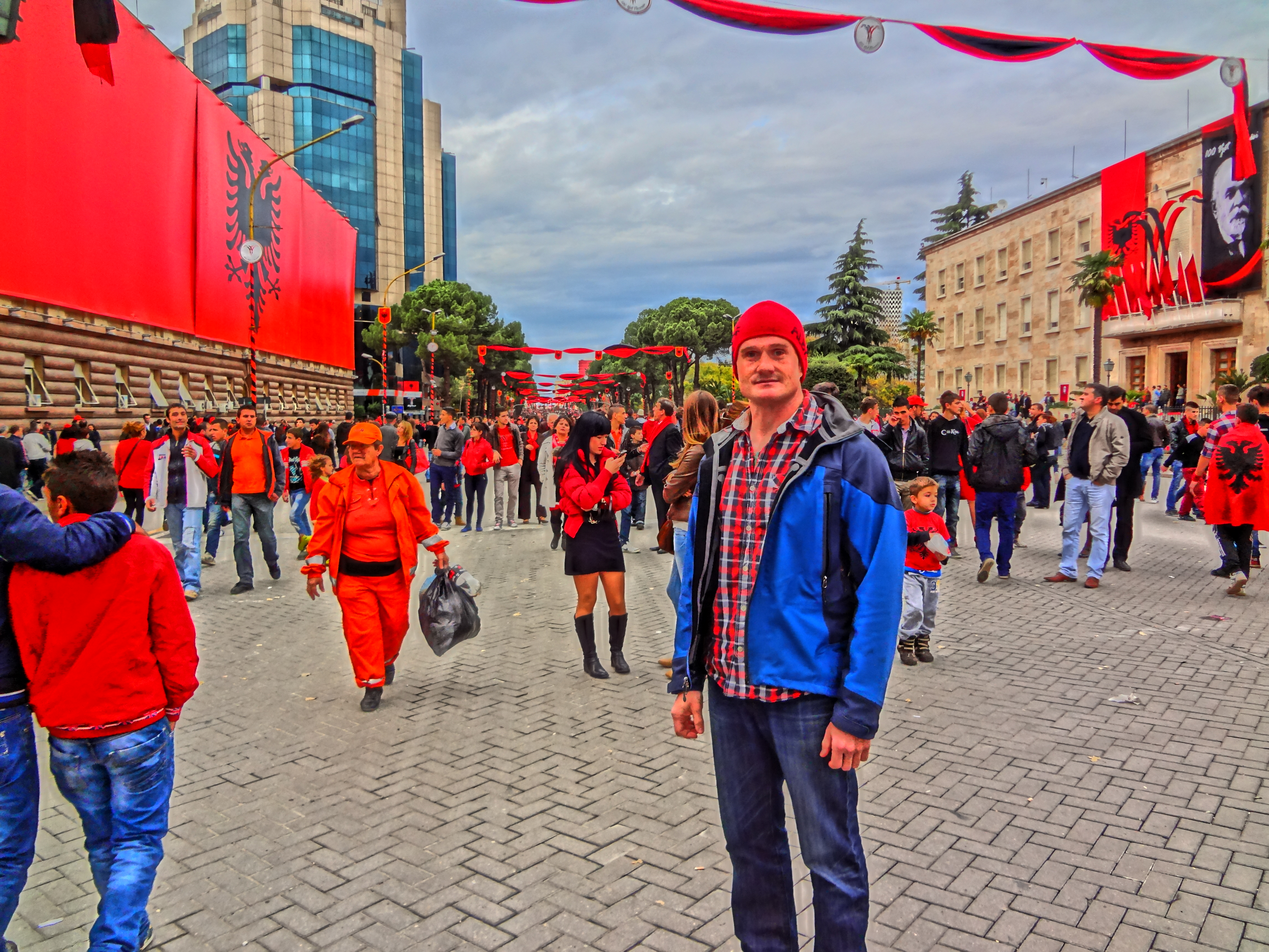 At the base of the hill I called a friend of mine from outside of the U.S. Embassy.  In order to receive clear counsel, it is best to make calls from a commonly known landmark.  Tirana was full of people wearing their nicest blacks and lots of reds.