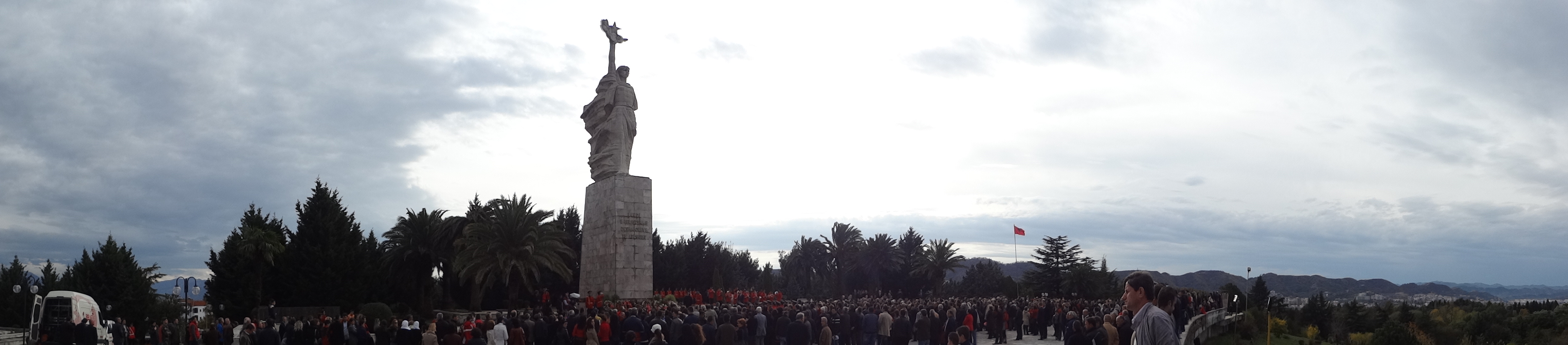 On the 28th, while waiting to catch the last bus into town around lunch time, I could hear people asking “will there be another bus?”  I thought it might be nice to walk down the hill into Tirana.  That way I could see if anything was happening at the monument of the woman holding the torch near the cemetery in the Sanitorium neighborhood.