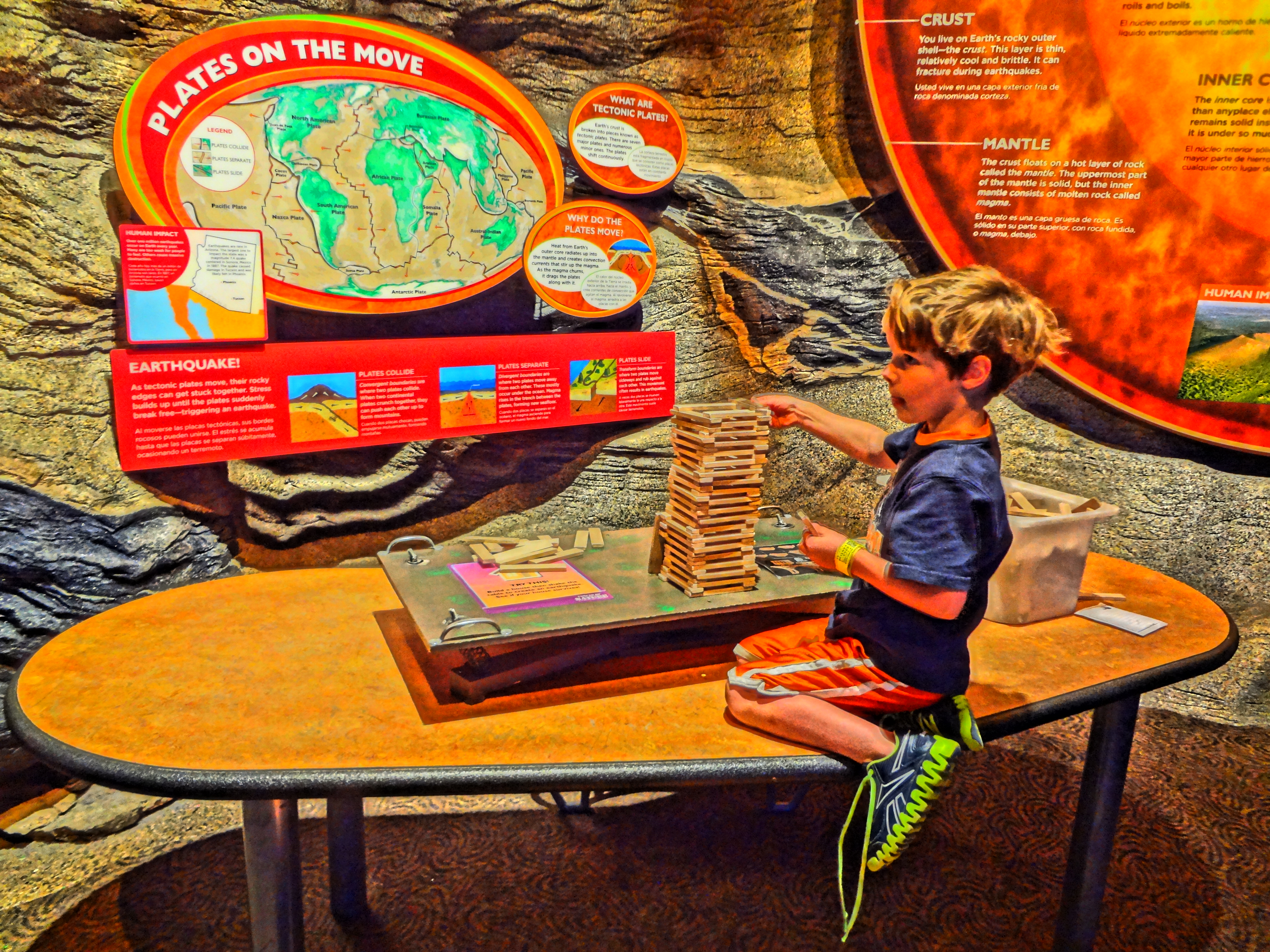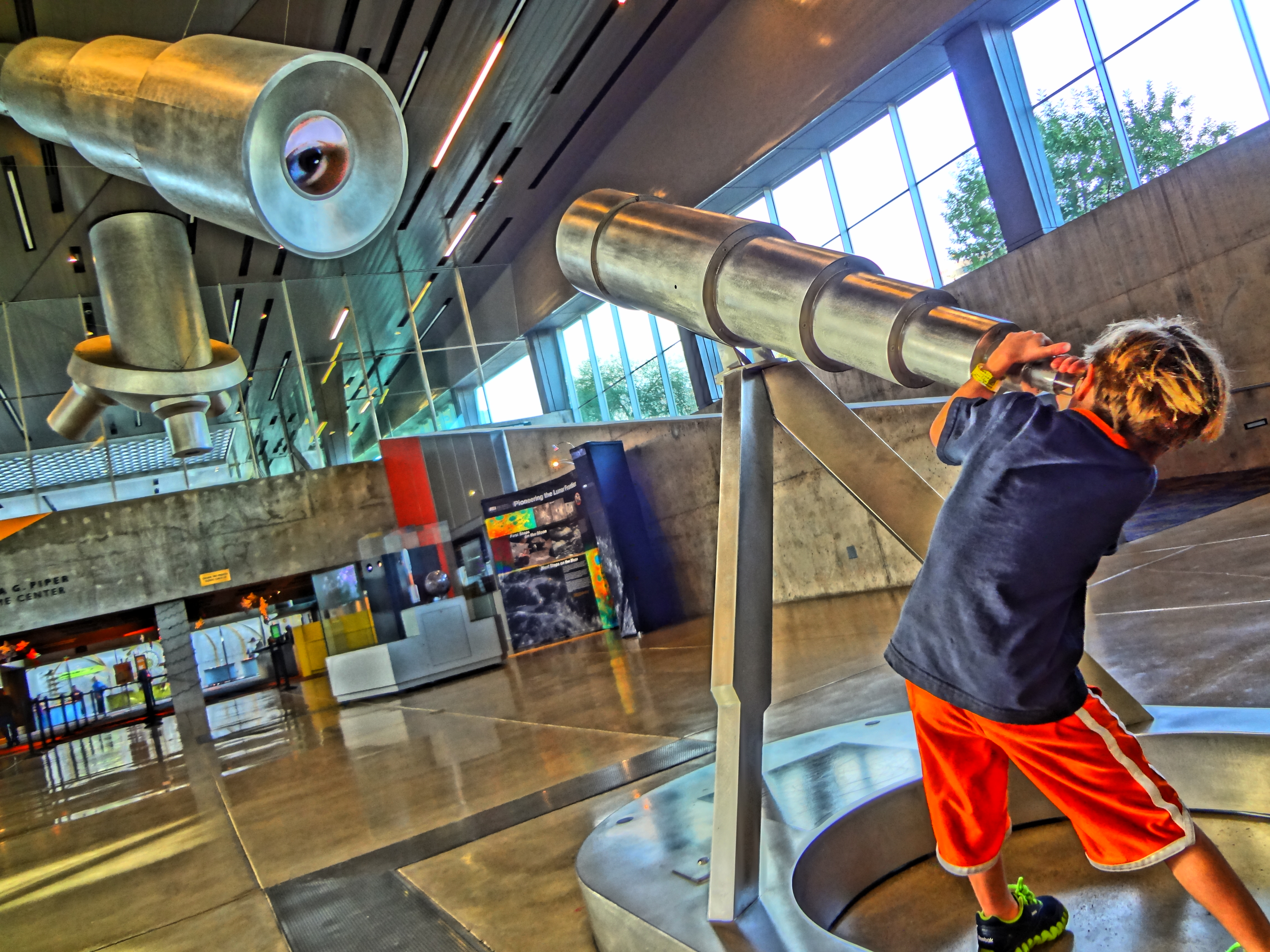 A science center would be a fascinating place without the presence of people.  Being there with boys aged 10, 6 and 5 multiplies the fascination around a given apparatus by three.  Every switch, knob, light, pedal, screen, sound, and block of wood take on a magnetic dimension.