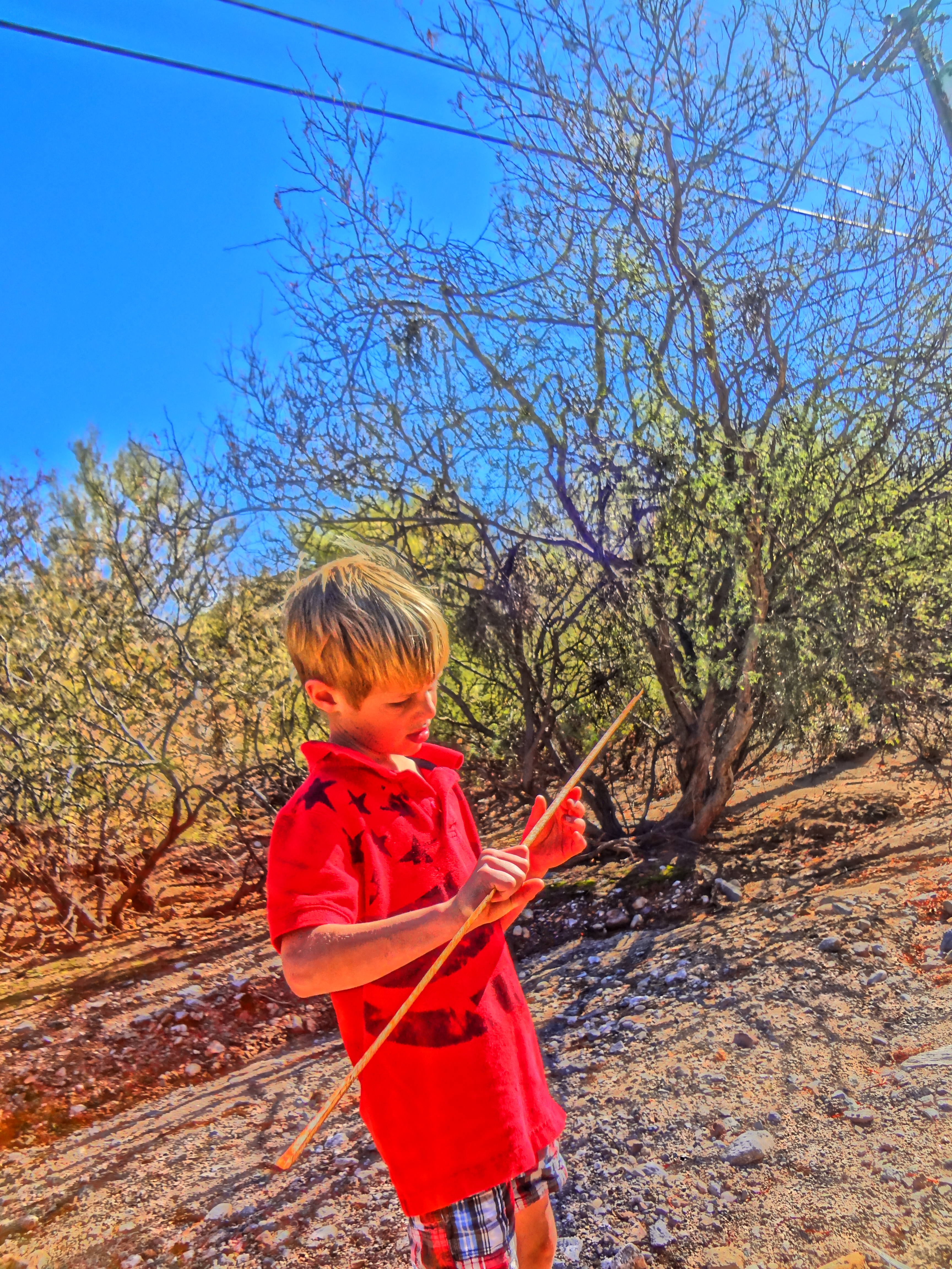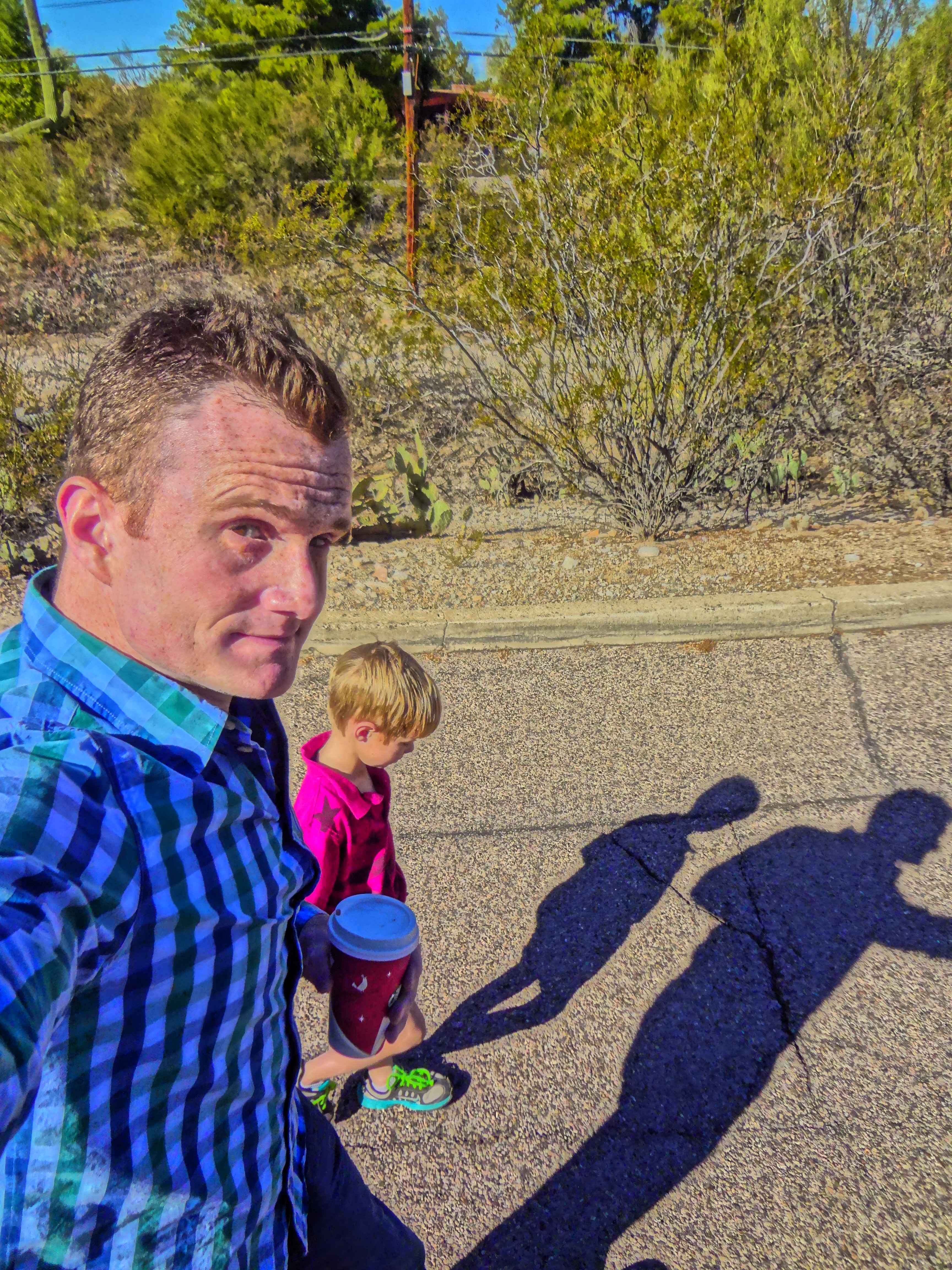 Today I had to catch a flight out of Tucson to come back to Seattle, otherwise I would have been ale to attend Nathan’s birthday party. He will turn seven on the sixth. Nathan is one of the most outgoing people I know. Children who have a lot of face time with nurses in hospitals tend to be comfortable around adults. He will open a conversation with anyone at hand and is eager to make others feel comfortable. The two of us went for a short walk today to look for the bobcat we saw yesterday.