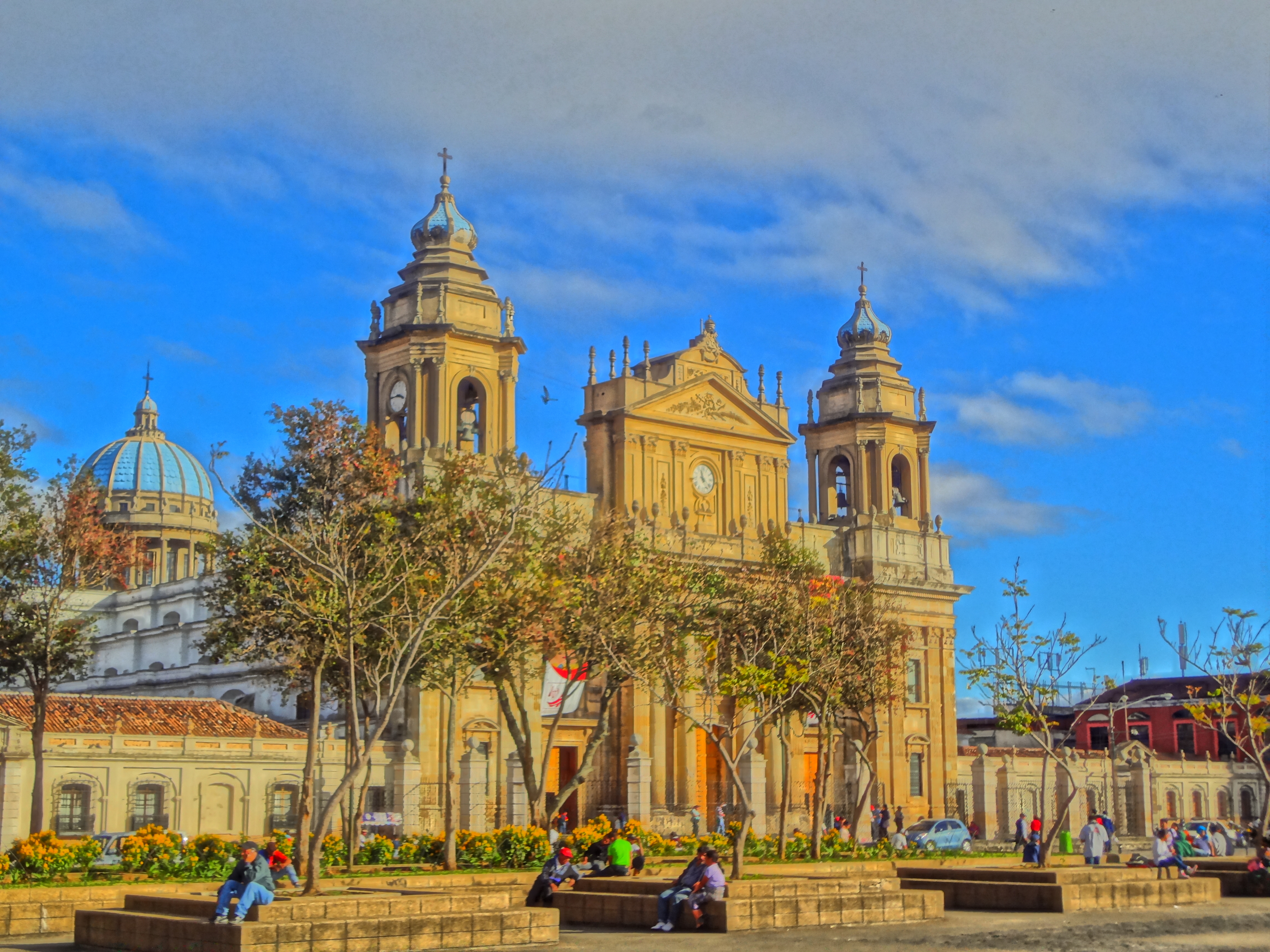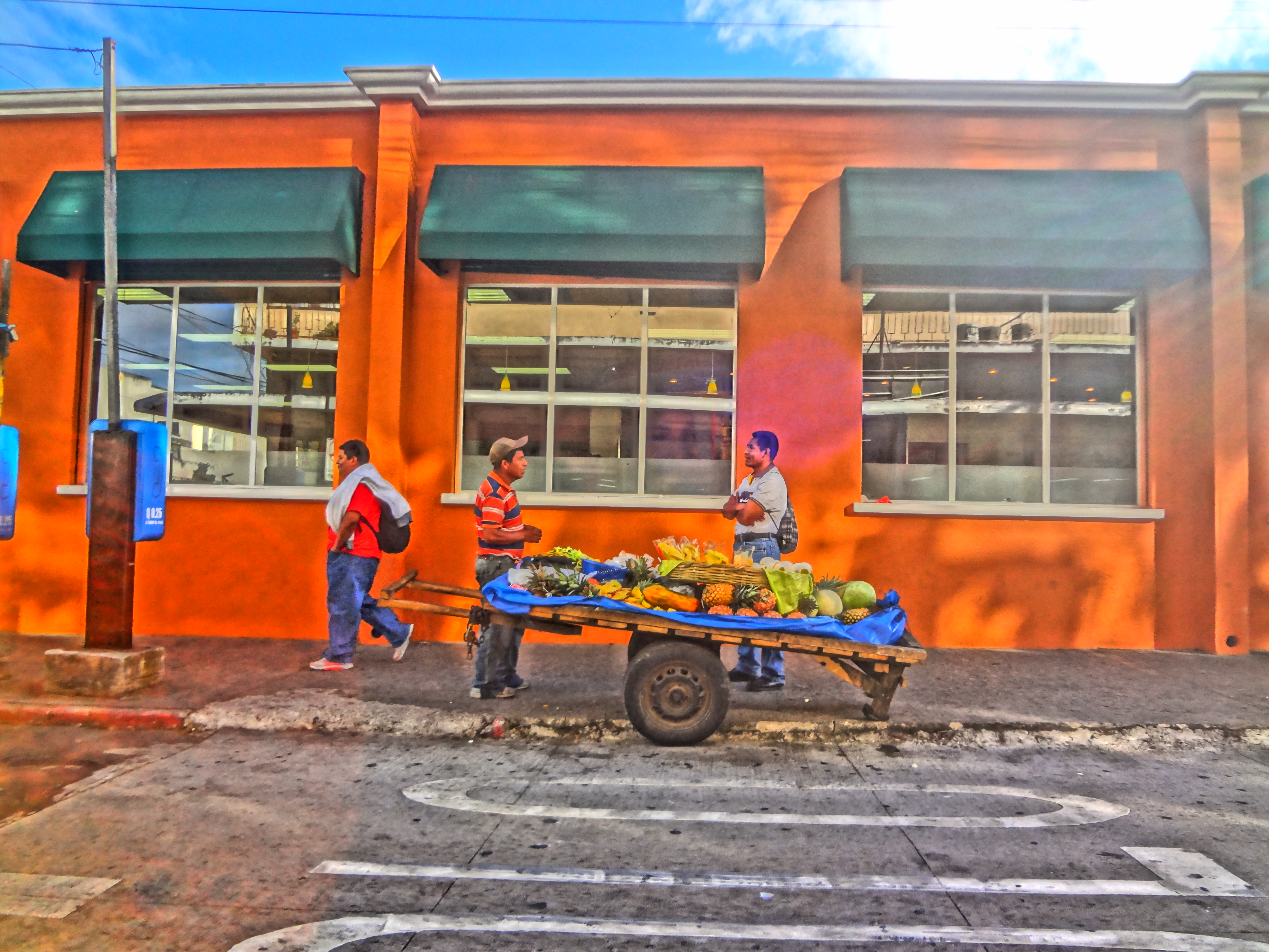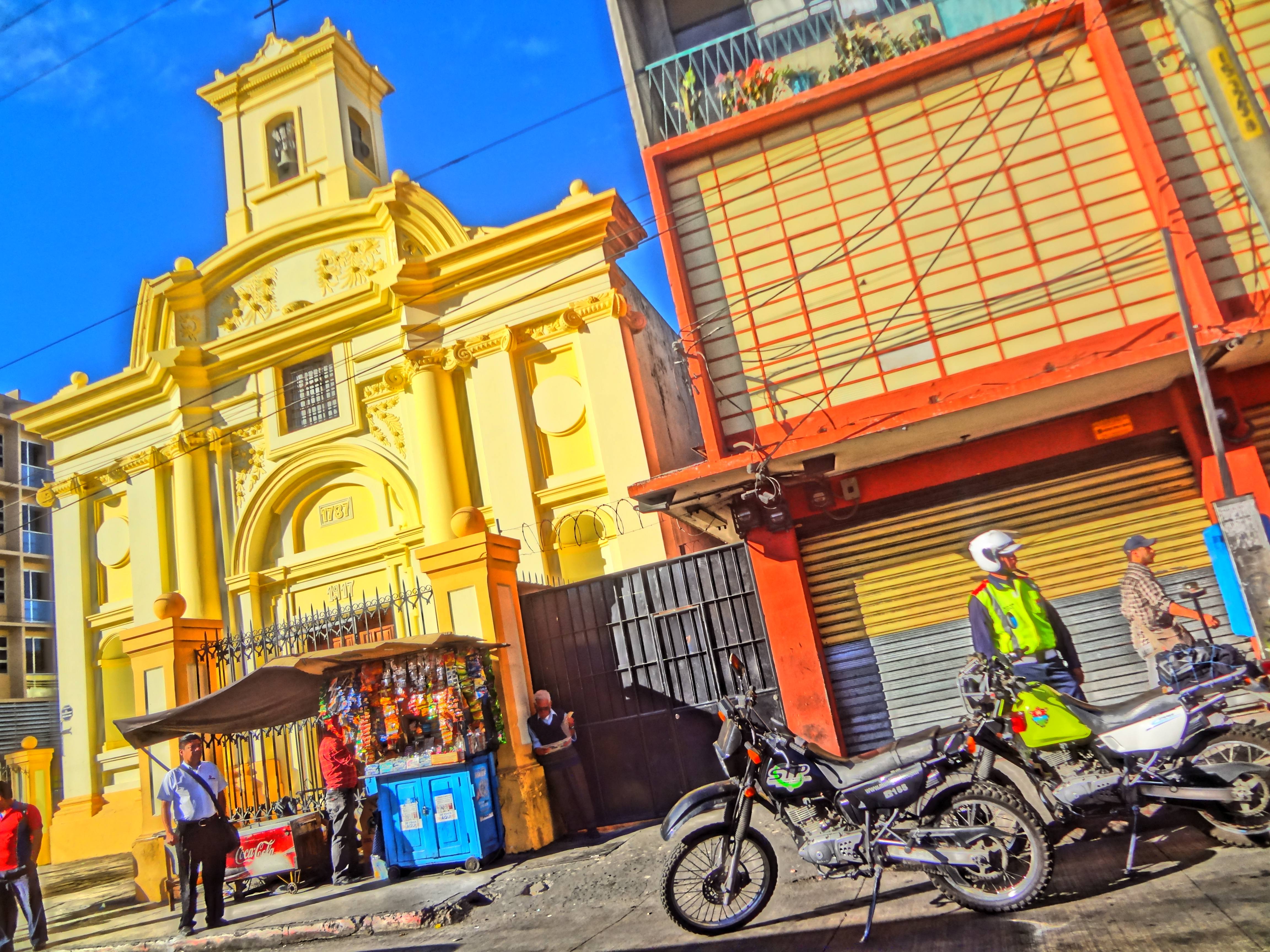 Guatemala City is a sprawling, tangled confusion of unmarked roads, unmarked one-ways, trapezoidal turn-arounds, and dramatic overpasses. Without Sebolla we would have been lost many dozens of times. He took us to the center of town, where the old cathedral is. We were hoping to shop at the market there, but time did not allow us to stay long. Sebolla wanted to be back in El Salvador before dark. Given the tenor of dishonesty, and the relaxed, second-nature familiarity with graft we had almost been victimized by earlier in the day, I wanted to get back too.