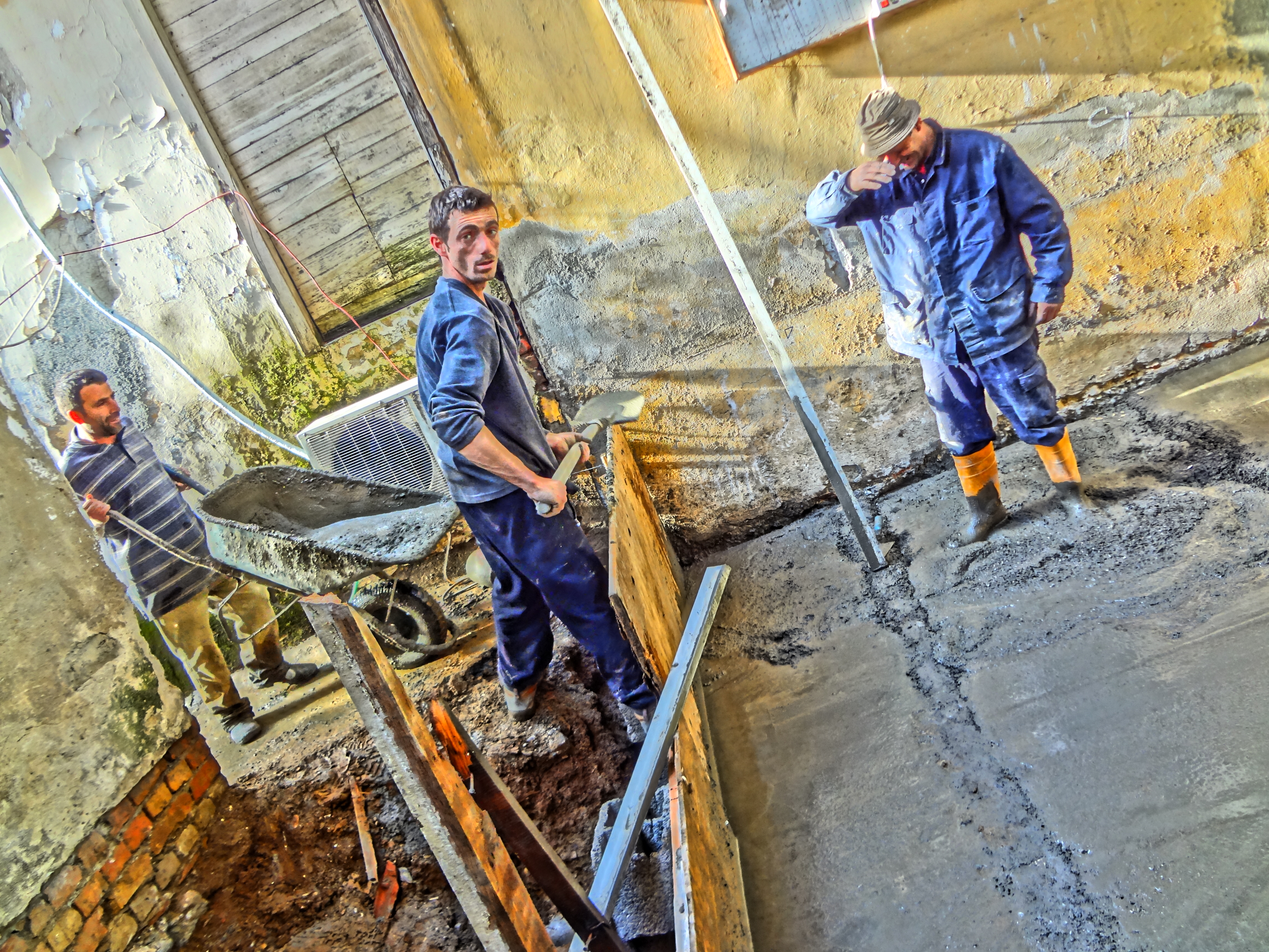 I had planned for us to place the concrete for the floor of the remodel we have been working on at the International Church on Friday.  Every one of my crew’s actions throughout the week led up to this day, this single activity.  Concrete pours for flatwork, i.e., floors and other slabs, usually take place on Fridays in the States.  This is because there is a built-in, two day break afterword for the concrete to set properly before the workers return to the site.  It was raining Friday morning, but it has rained five out of every seven days since I returned to Tirana six weeks ago.  I have heard that in Hawaii the people only work when the weather is comfortable.  In the lower 48, however, we work in any and all conditions.  Albania is more like Hawaii than I knew.