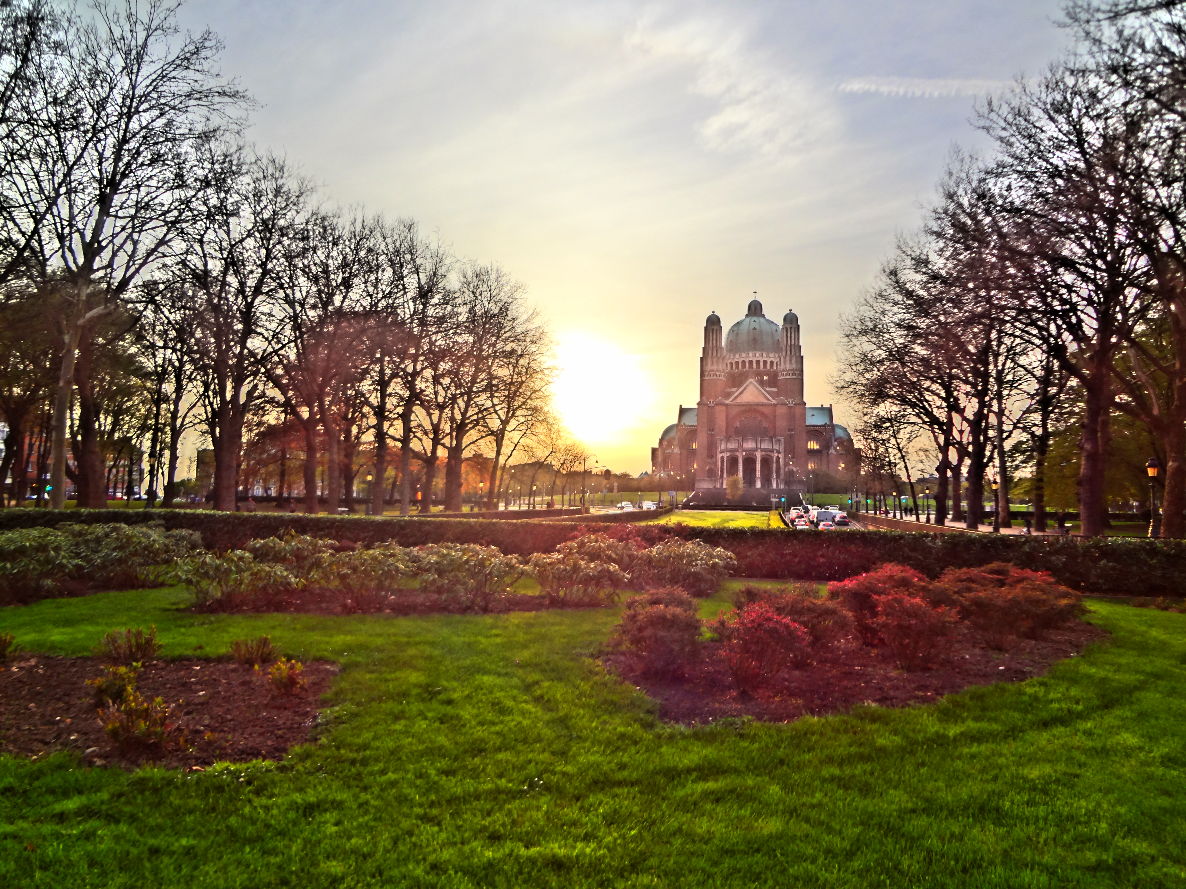 The Basilica of the Sacred Heart in Brussels. Dusk, 27 . April . 2013.